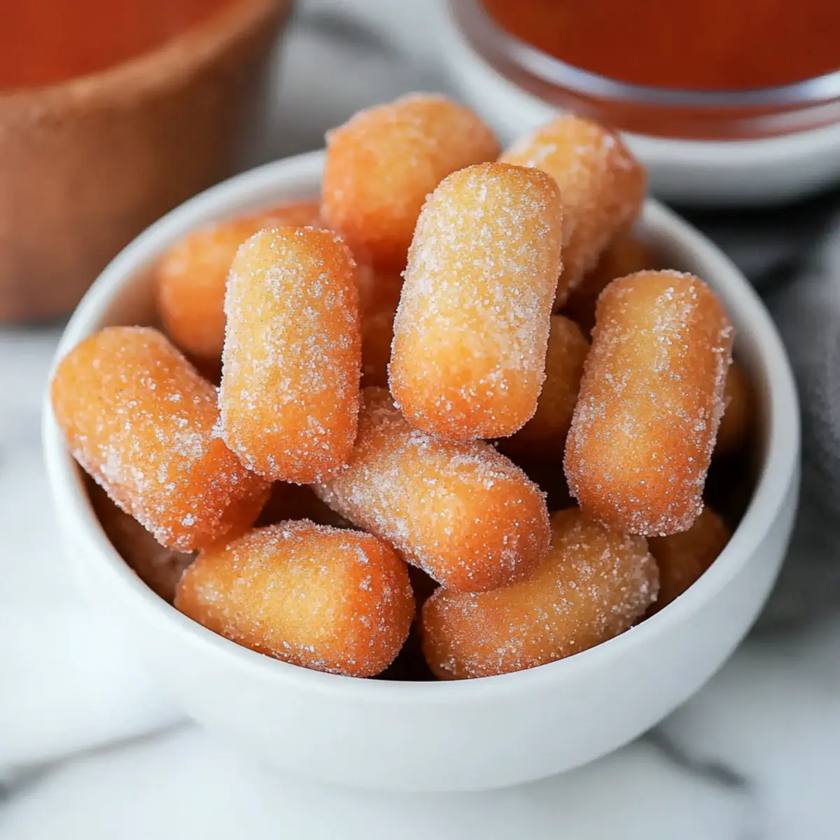 Churro Bites Surprise: Fill the centers with melted chocolate or caramel before frying for a gooey, decadent experience that takes each bite to new heights.